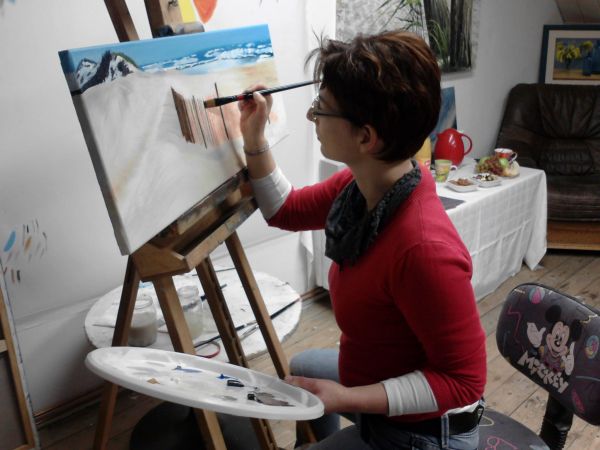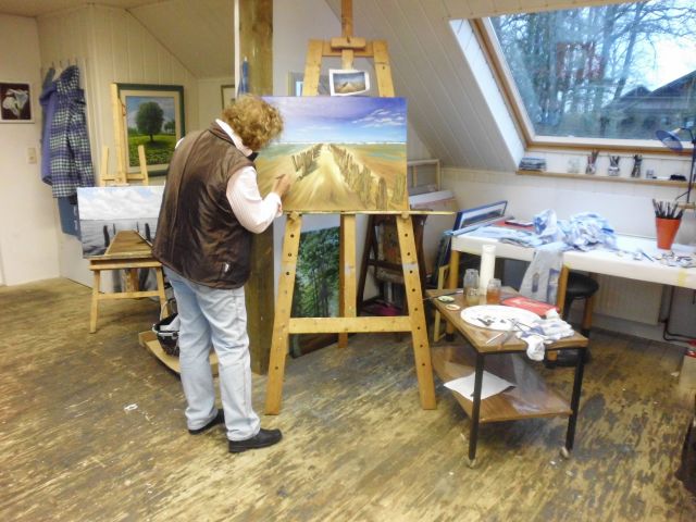 In kleiner gemütlicher Runde im Atelier “Natur im Bild” wird die Hemmschwelle zur Malerei schnell überwunden. Die Teilnehmerinnen malen Motive ihrer Wahl und erfahren dabei Grundkenntnisse über Material, Farblehre, Bildaufbau und Perspektiven. So unterschiedlich wie die Teilnehmerinnen sind auch die Bilder, die entstehen.
