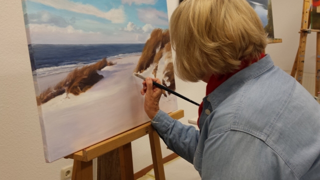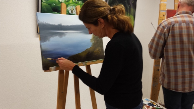 Die Malschüler(innen) können in den Kursen ihr eigenes Motiv Schritt für Schritt auf die Leinwand bringen, jede(r) im eigenen Tempo. Abschalten, Spaß haben, Kreativ sein.