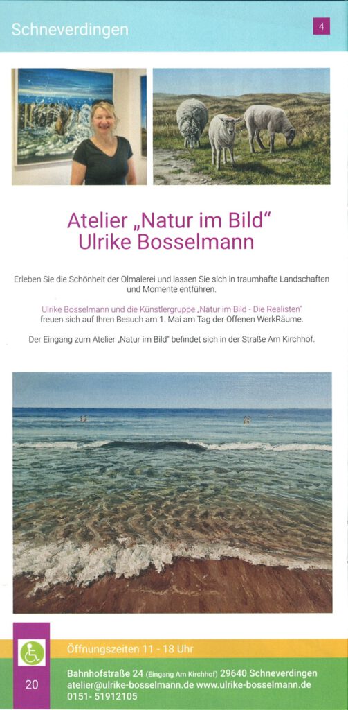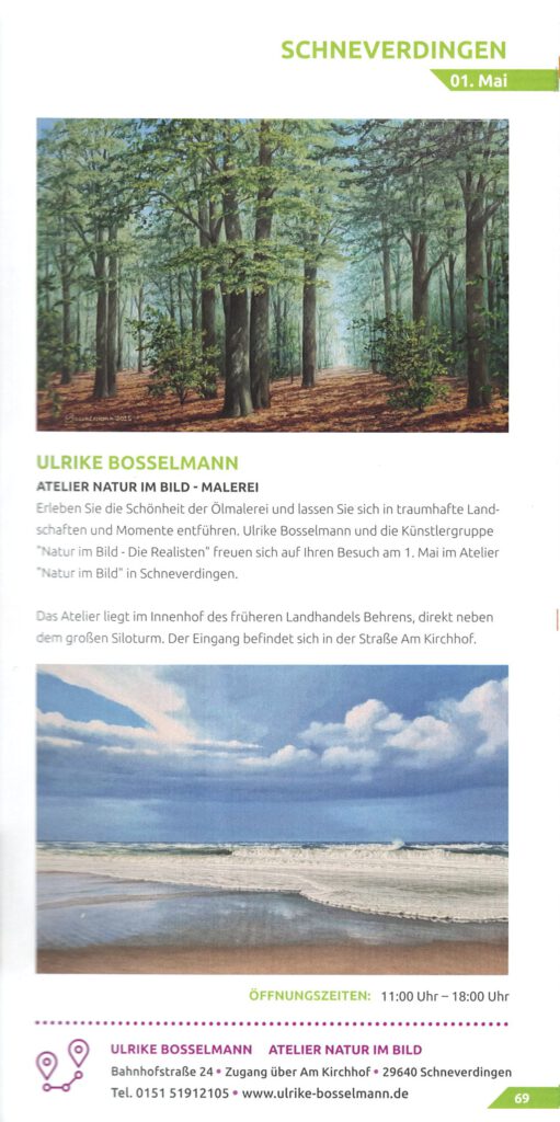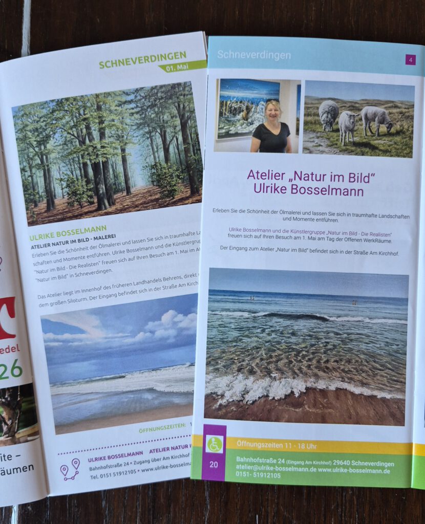Auch in 2026 geht es mit den Malkursen im Atelier “Natur im Bild” weiter. Folgende Termine werden angeboten: