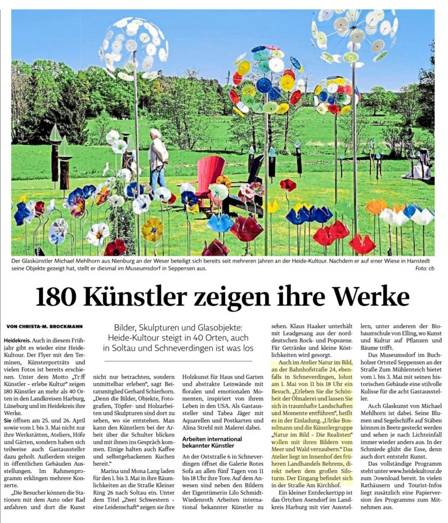 Am 05.10.2025 wurde die Gemeinschaftsausstellung in der GALERIE “ROTES SOFA” und Atelier “Im Hof” von Lilo Schmidt-Wiedenroth in Schneverdingen, Oststraße 6, eröffnet.