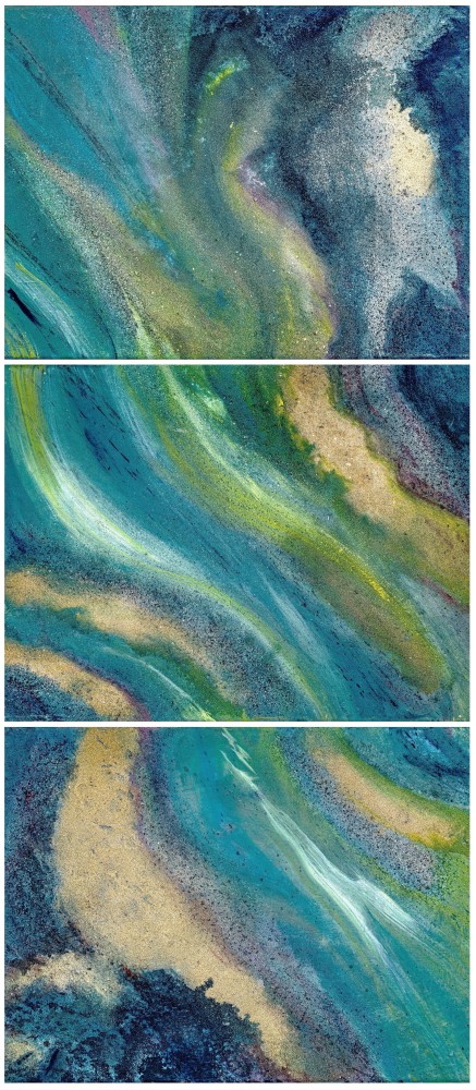 Wasserlauf Triptychon - Mischtechnik 3 x 30 x 40 cm (2012)