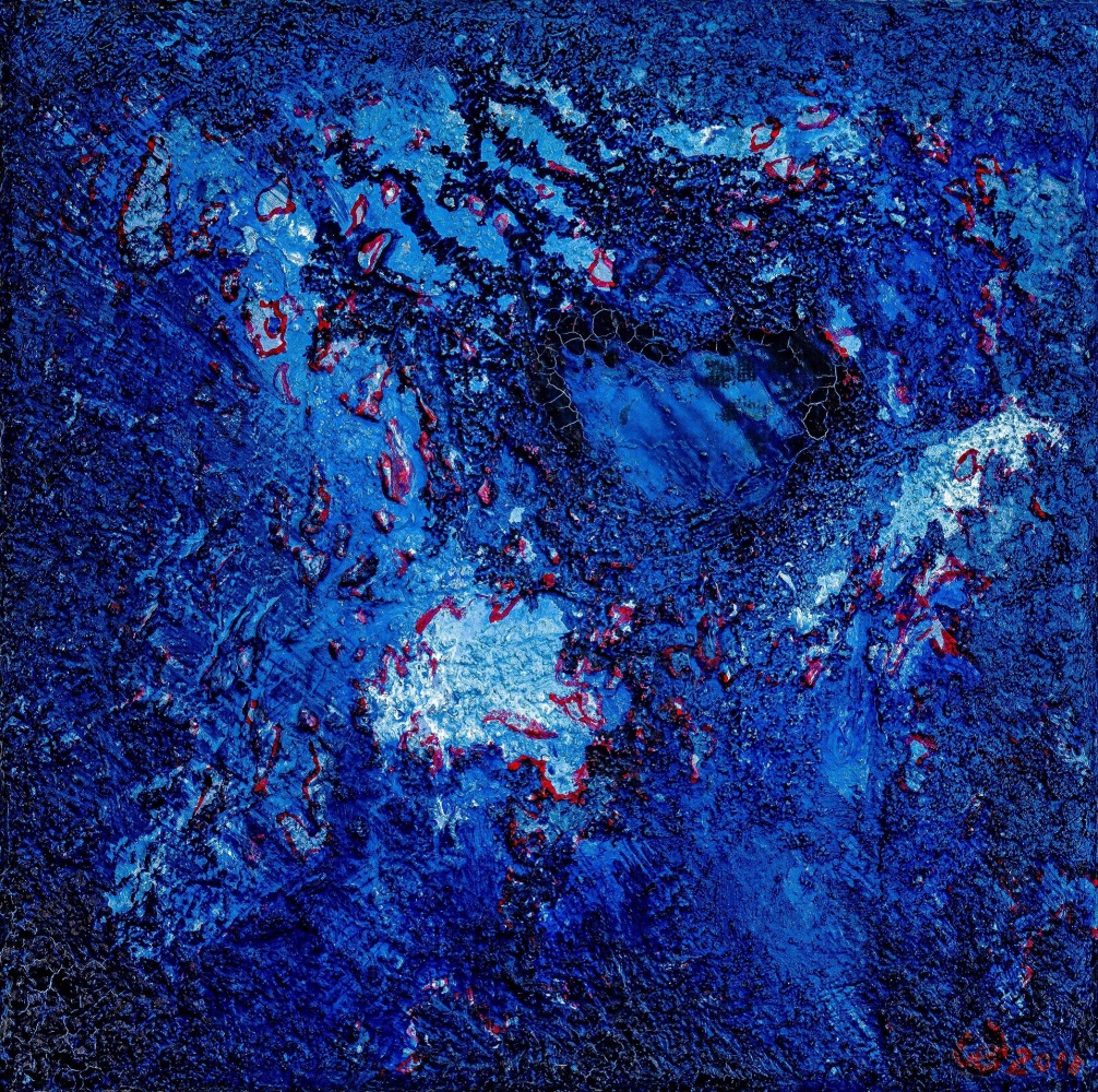 blue heart - Öl, 20 x 20 cm (2018)